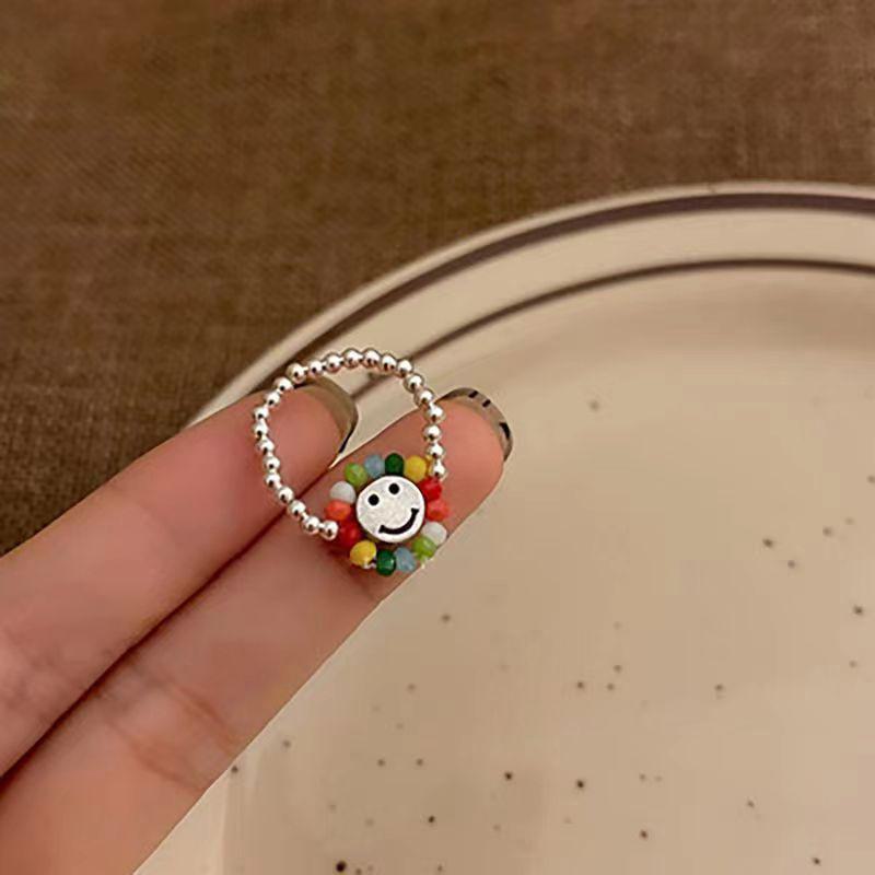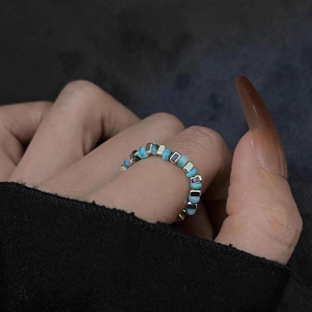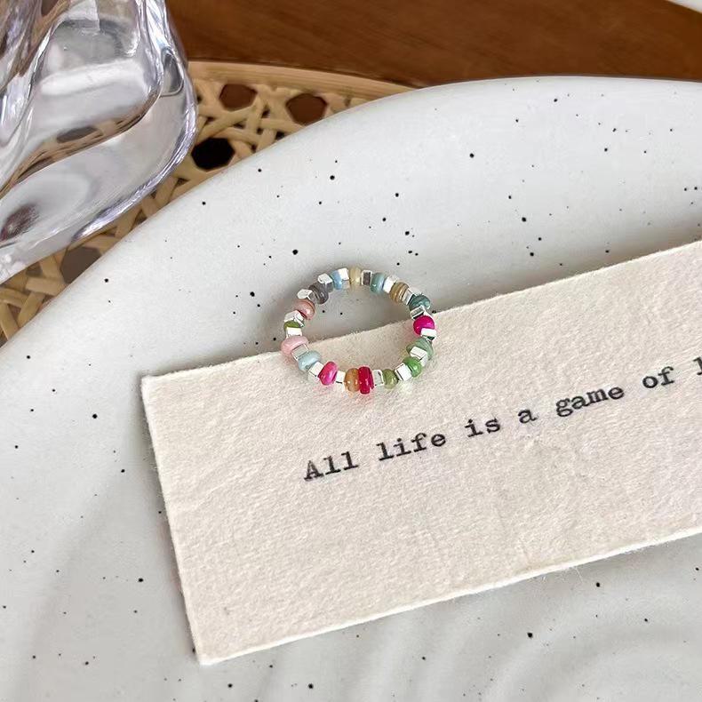 Трендовое 2025 Красочное Бисероплетение Серебряное Эластичное Кольцо для Женщин - Легкая Роскошь, Нишевый Дизайн Высокого Класса