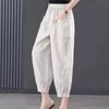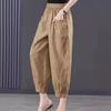 Летние повседневные свободные оверсайз модные однотонные универсальные простые женские брюки-фонарики с капюшоном и карманами
