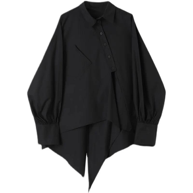 Женская рубашка корейская мода свободная тонкая винтажная блузка с сплошным лацканом длинный рукав простая рубашка пара одежда топы