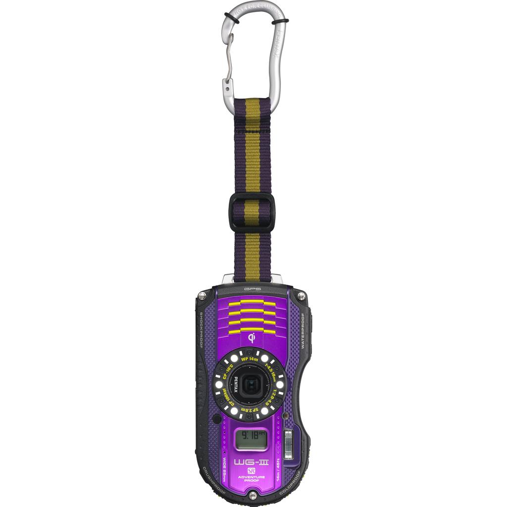Водонепроницаемая цифровая камера PENTAX PENTAX WG-3GPS, фиолетовая, 1 см, подставка для макросъемки, в комплекте электронный компас, дополнительный ЖК-дисплей, стандарт Qi PENTAX WG-3GPSPU 12674
