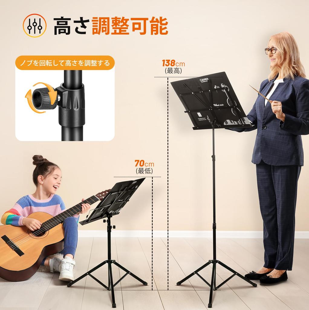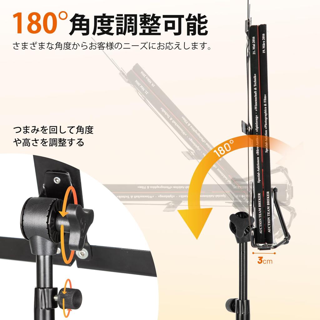 [Простая в использовании ручка точной настройки] Нотный лоток можно наклонять на 180 градусов, что позволяет пользователям любого роста читать ноты. Кроме того, максимальная нагрузка составляет 5 кг, а размеры нотной доски составляют 50,5 см x 29 см, поэтому на нотной доске можно разместить не только партитуры, но и ноутбук, презентационные материалы и книги.. Его также можно использовать как подставку для проектора.