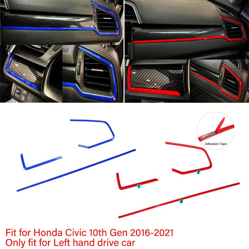 3 шт. Красная наклейка на рамку приборной панели салона для Honda Civic 10-го поколения 2016 2017 2018 2019 2020 2021 с левым рулем — купить товар онлайн с бесплатной доставкой по всему миру!