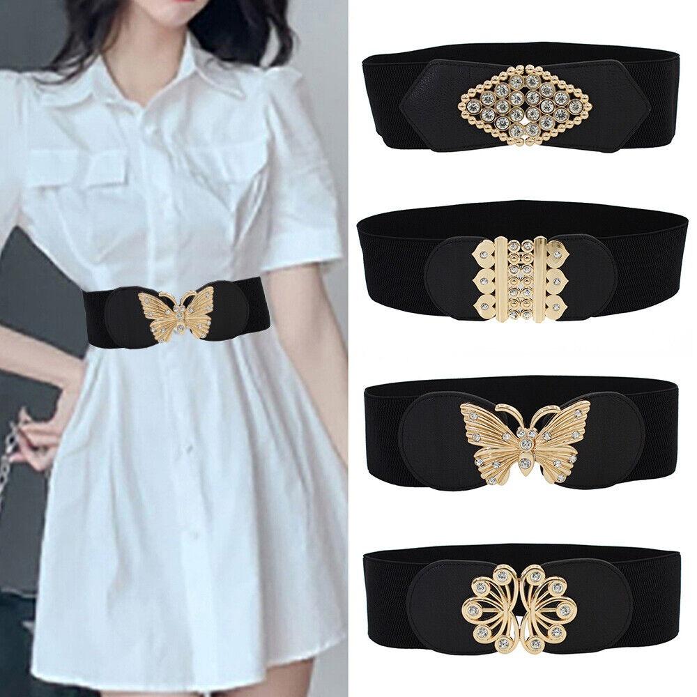 Широкий пояс с металлической пряжкой, эластичный широкий пояс со стразами, удобный эластичный пояс для женщин — купить товар онлайн с бесплатной доставкой до всему миру!