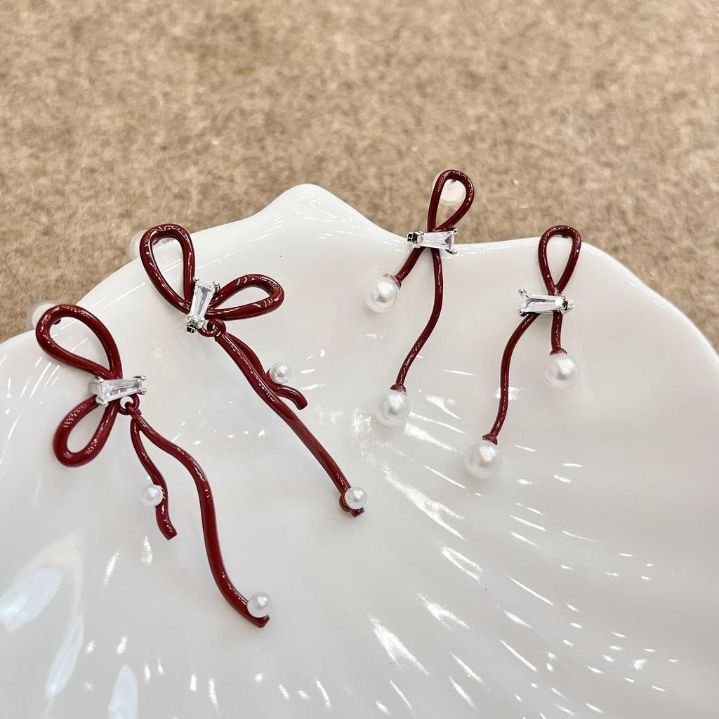 2024 Высококлассные серьги Ankola с красным бантом: Нишевый дизайн в гонконгском стиле для женщин
