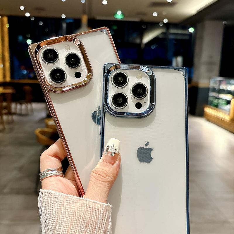 Чехол для телефона с сплошной цветной рамкой и квадратным узором для iPhone 16 Pro Max 15 Pro 14 13 12 11, ударопрочный прозрачный мягкий бампер из ТПУ