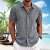 Мужская рубашка с короткими рукавами из хлопка и льна, легкая, приятная для кожи пляжная рубашка, свободная, повседневная, однотонная, модная мужская одежда