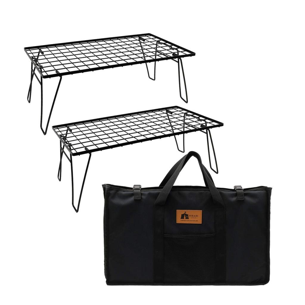 HIBARI Полевая стойка для кемпинга, набор из 2 штук с чехлом для хранения, черная походная стойка для хранения, компактный уличный столик, складной столик, низкий стул для отдыха на природе