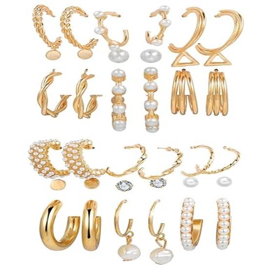 Обновите свою коллекцию украшений с помощью этого комплекта из 18 пар серег в стиле знаменитостей, который представляет собой сочетание позолоченных серег-колец и серег-гвоздиков с кристальным жемчугом.. Независимо от того, наряжаетесь ли вы для особого случая или добавляете нотку элегантности в свой повседневный образ, в этом универсальном наборе есть все, что вам нужно!