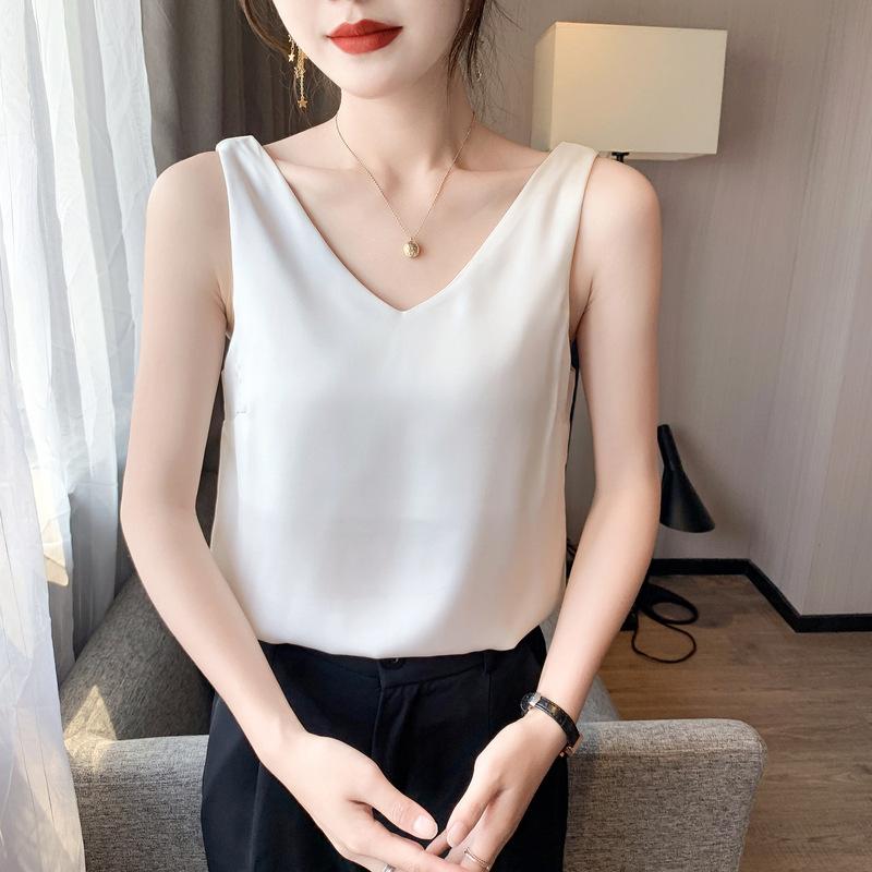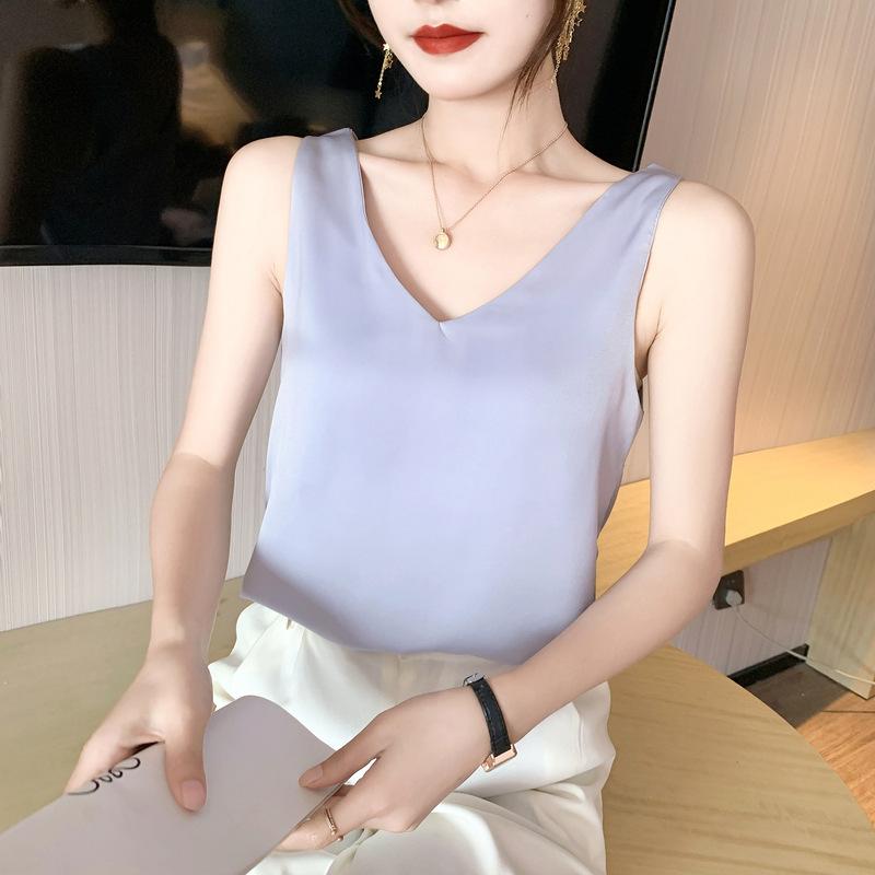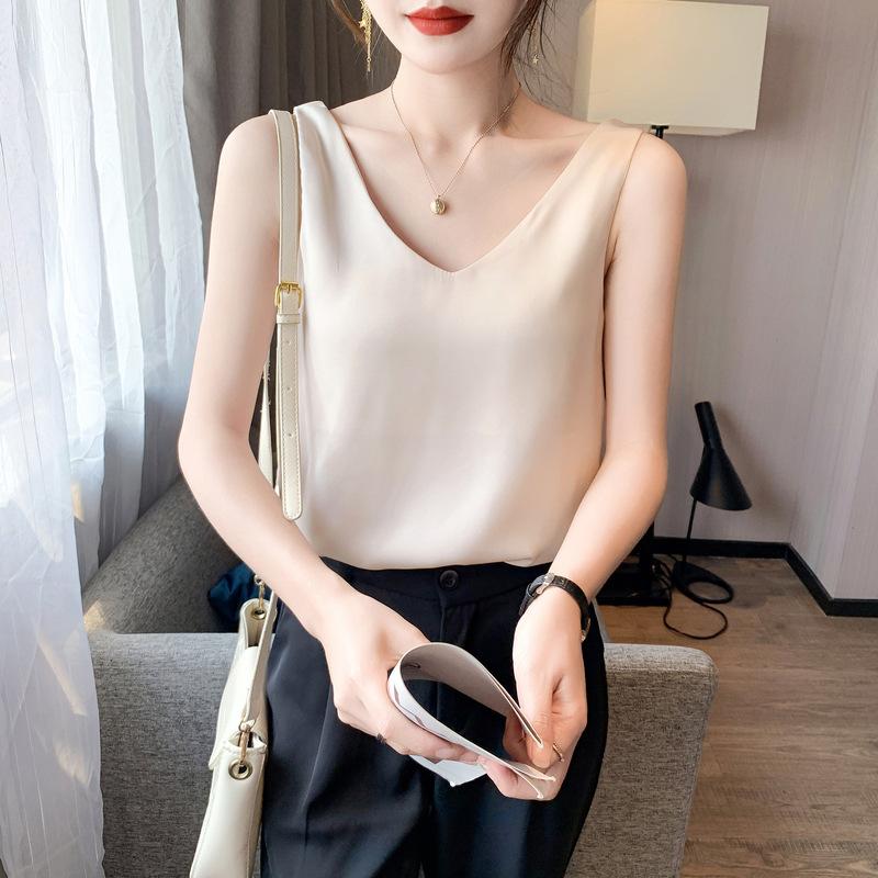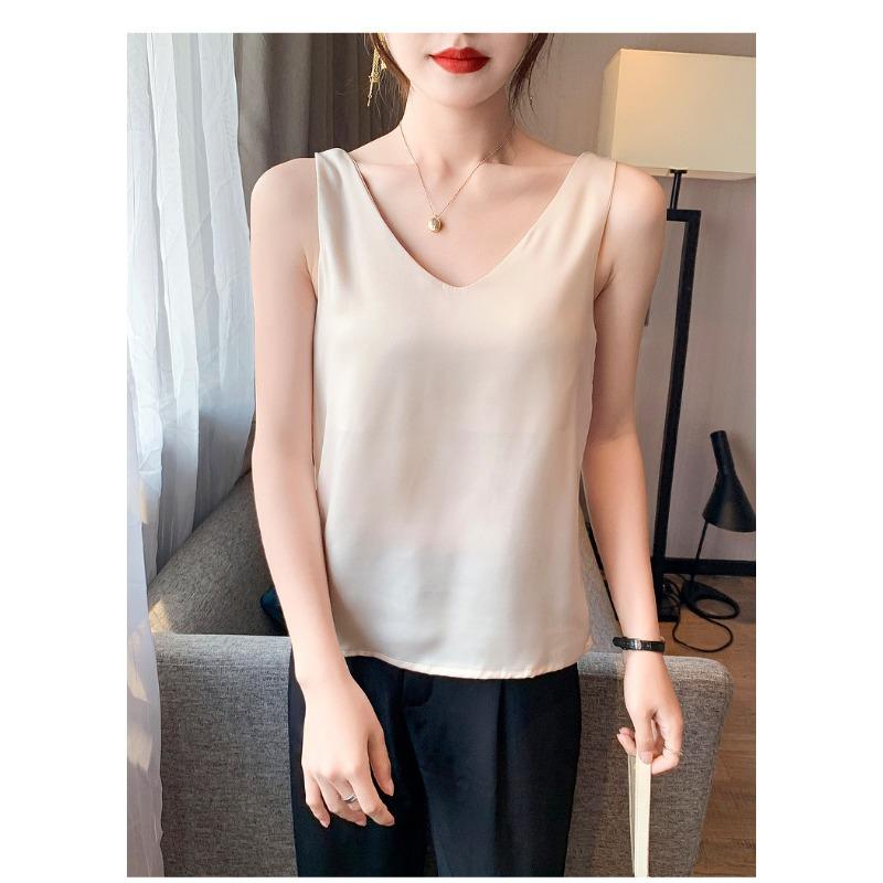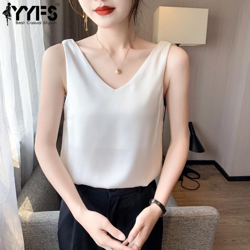 YYFS Женские модные повседневные летние весенние однотонные блузки и рубашки без рукавов с v-образным вырезом и принтом