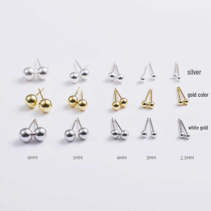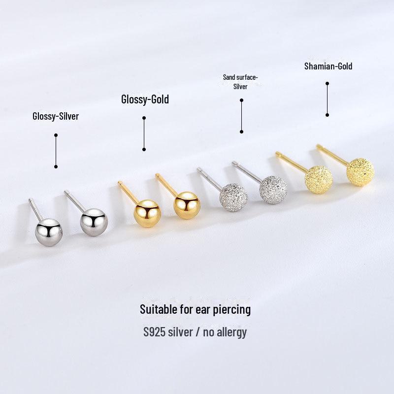 Серьги-бобы из серебра S925 с круглыми бусинами и песочной поверхностью для женщин