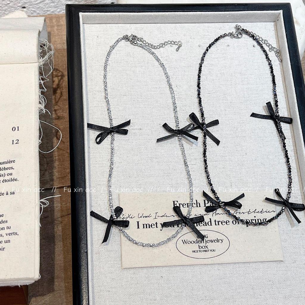 Изысканное ожерелье из хрустальных бусин с бантом из ленты - легкий роскошный стиль из Тондэмуна, Южная Корея — купить товар онлайн с бесплатной доставкой по всему миру!