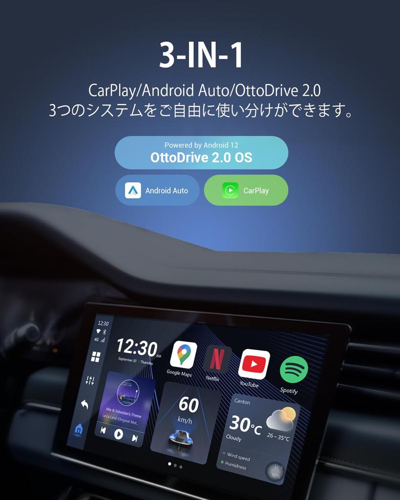 Этот продукт произведен компанией Ottocast, которая очень популярна в Японии, поэтому вы можете смело его приобретать.. Этот новый CarPlay AI Box был неоднократно улучшен и проверен в ответ на отзывы многих клиентов.. Разделение экрана не только на 5:5, но и долгожданная 3:7 и 7:3 соотношения. Кроме того, такие популярные японские приложения, как TVER, ABEMA, Disney+ и Yahoo Car Navigation, уже загружены, поэтому нет необходимости загружать их отдельно.. Более того, теперь вы можете создать свой собственный удобный домашний экран, добавив любимые виджеты.. Также доступны онлайн-обновления FOTA, что позволяет вам легко обновить прошивку самостоятельно.