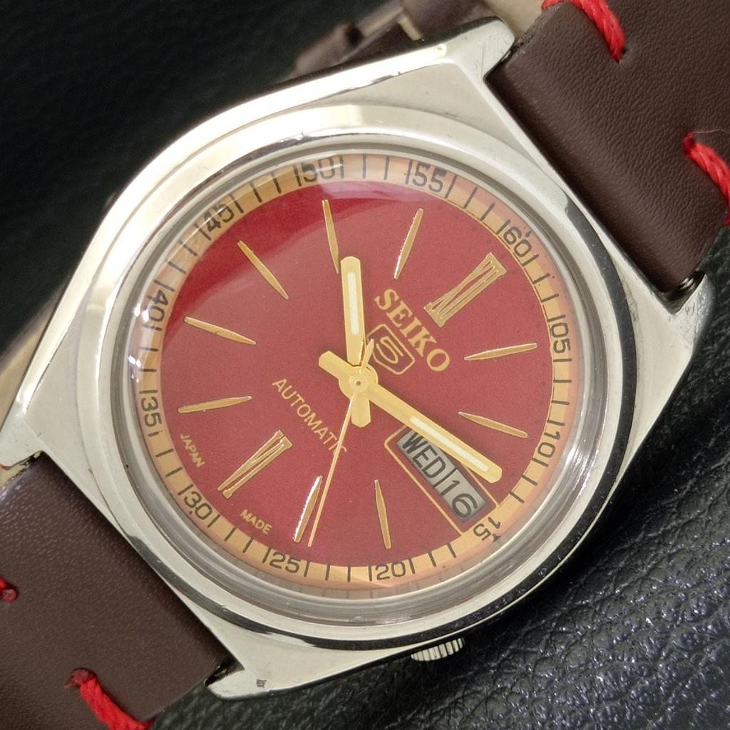 Б/У винтажные мужские часы SEIKO 5 AUTOMATIC 7009A из Японии с красным циферблатом a434980-2 R122-a434980 — купить товар онлайн с бесплатной доставкой до всему миру!