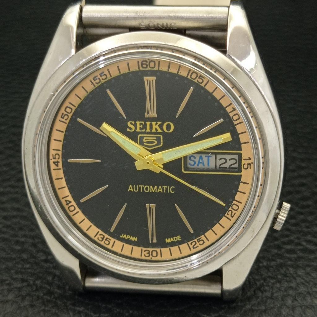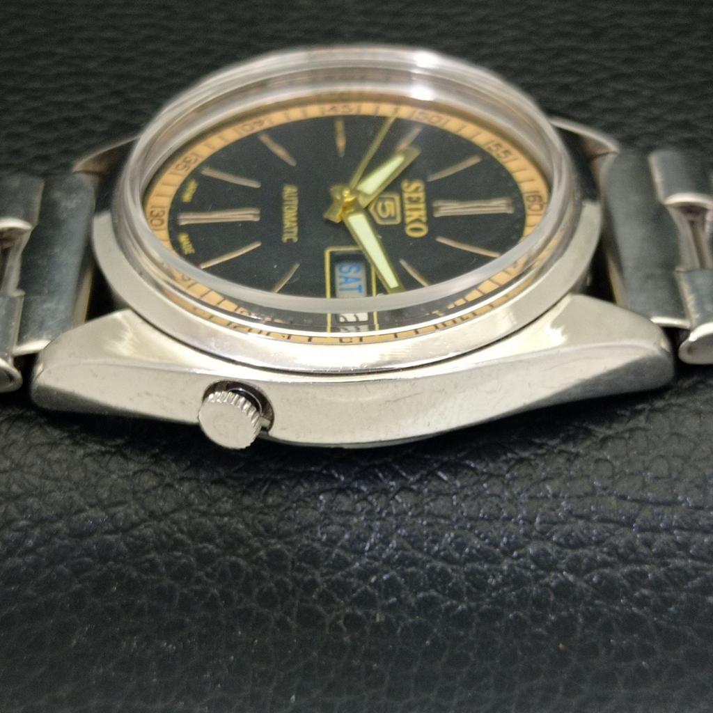 Б/У ВИНТАЖНЫЕ ЧАСЫ SEIKO 5 AUTOMATIC 7009A ЯПОНИЯ МУЖСКИЕ ЧАСЫ С ЧЕРНЫМ ЦИФЕРБЛАТОМ a435053-2 R122-a435053