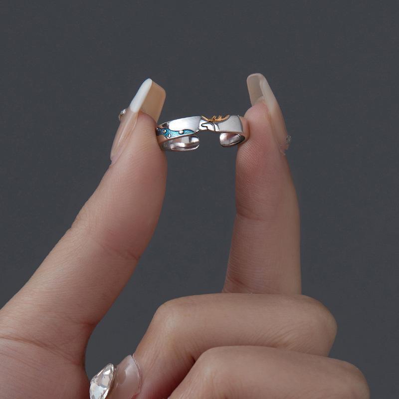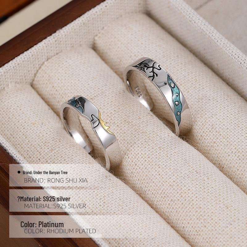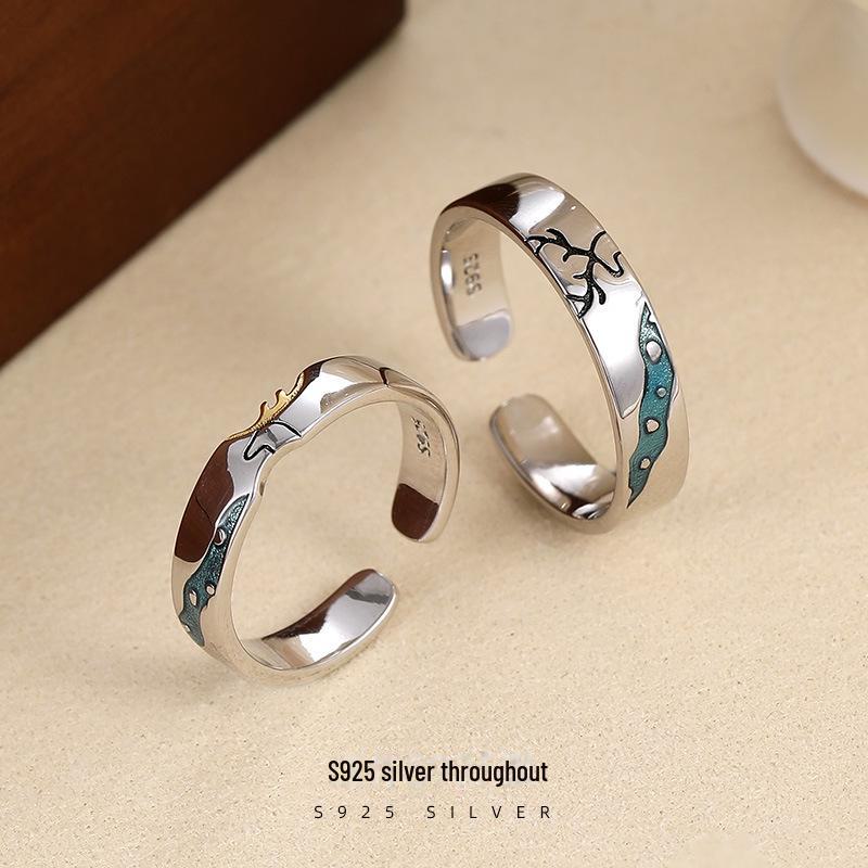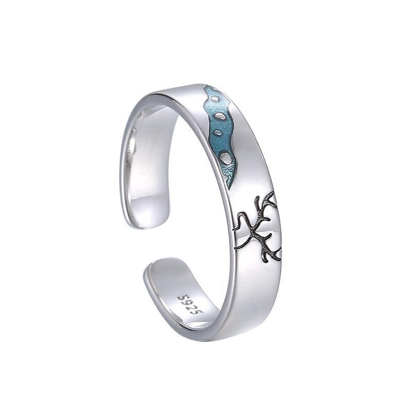 Парные кольца S925 с изображением оленей из дерева баньяна — подарок на День святого Валентина в лесном стиле для мужчин и женщин.
