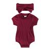 Детский комбинезон для девочек, однотонный ребристый комбинезон с короткими рукавами и бантом на голове, летние наряды