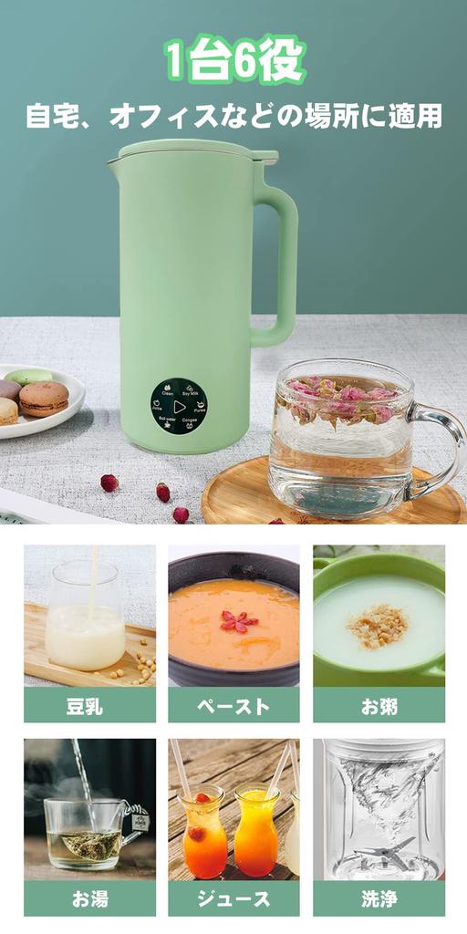 6 ролей в одной машине: соевое молоко, паста, каша, горячая вода, сок, чистка. Этот нагревательный блендер автоматически выполняет все действия — от приготовления пищи до измельчения — одним нажатием кнопки.. Другими словами, это комбинация электрочайника и кухонного комбайна! Поскольку все ингредиенты готовятся без кипячения, вы можете наслаждаться соевым молоком, содержащим полезные вещества соевых бобов, дома.. Не только супы и детское питание, но и свежевыжатые соки в режиме без подогрева!