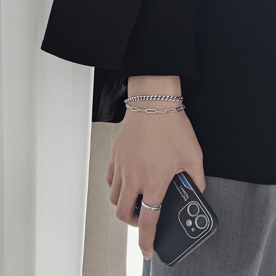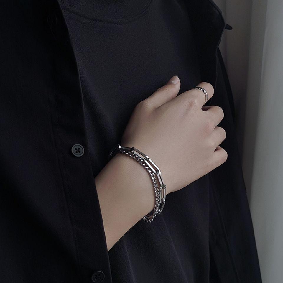 Модный двухслойный браслет из титановой стали для мужчин и женщин в стиле хип-хоп