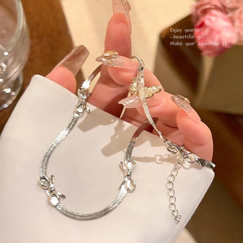 Минималистичное серебряное ожерелье из змеиной кости с бантом