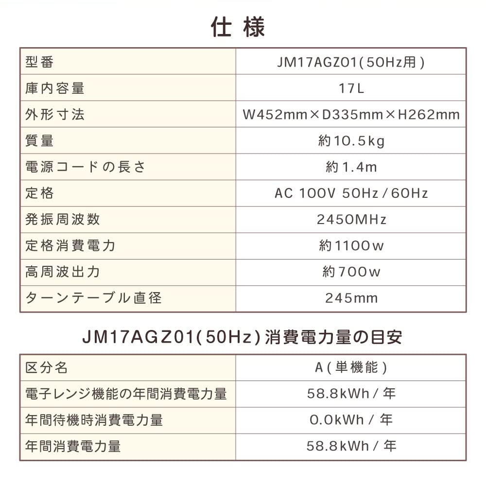 * Внешние размеры: Ширина 452 x Глубина 335 мм x Высота 262 (мм)* Масса: 10,5 кг* Рейтинг: AC100V 50Hz* Номинальная потребляемая мощность: приблизительно. Выходная мощность 1100 Вт*: Эквивалентно 700 Вт, 600 Вт, 500 Вт, 360 Вт, 280 Вт, 120 Вт* Внутренняя емкость: 17L* Диаметр поворотного стола: 245 мм* Рейтинг энергосбережения: ★★* Годовое потребление электроэнергии: 58,8 кВтч/год