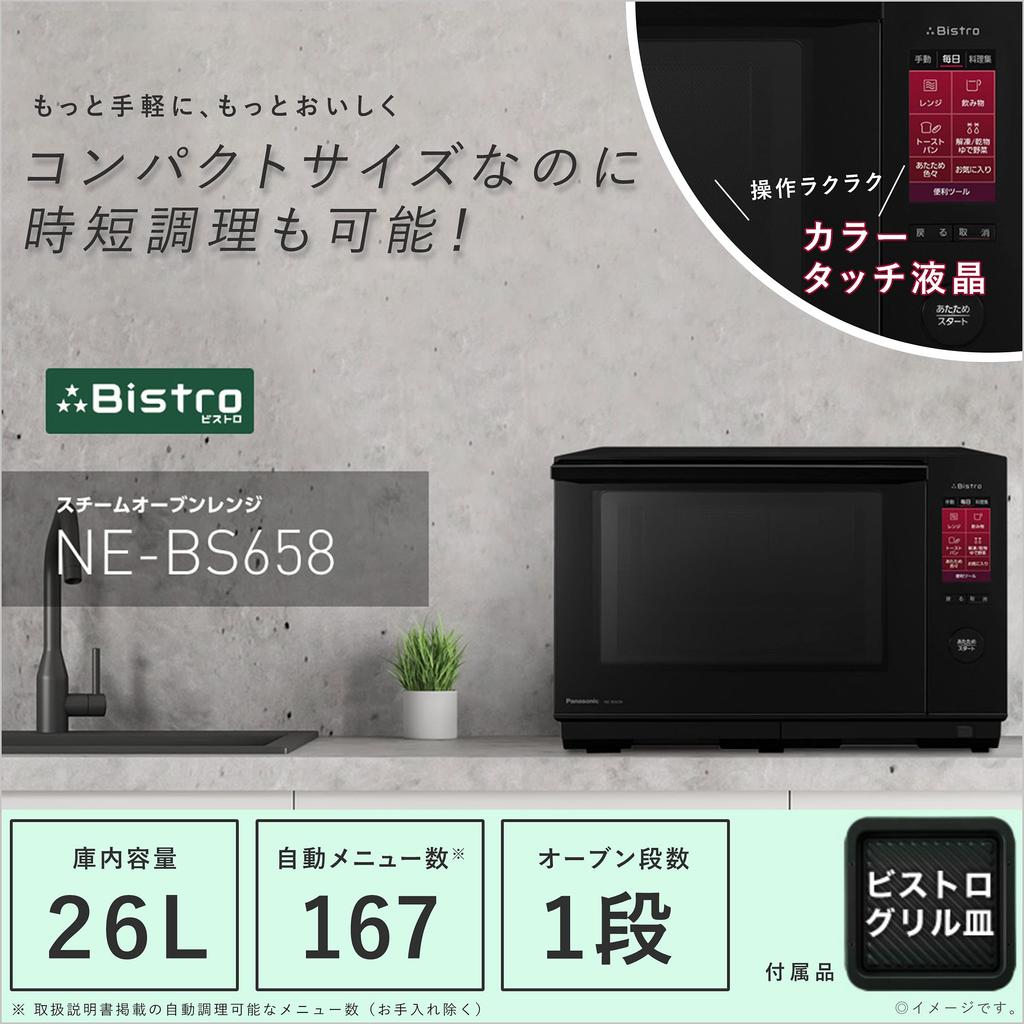 Микроволновая печь Panasonic Bistro Steam 26L с сенсорной ЖК-панелью черного цвета NE-BS658-K