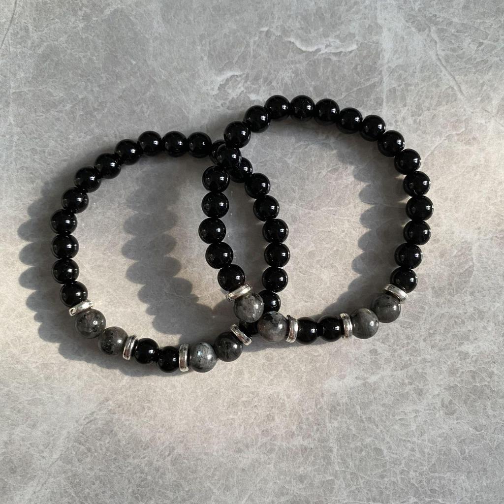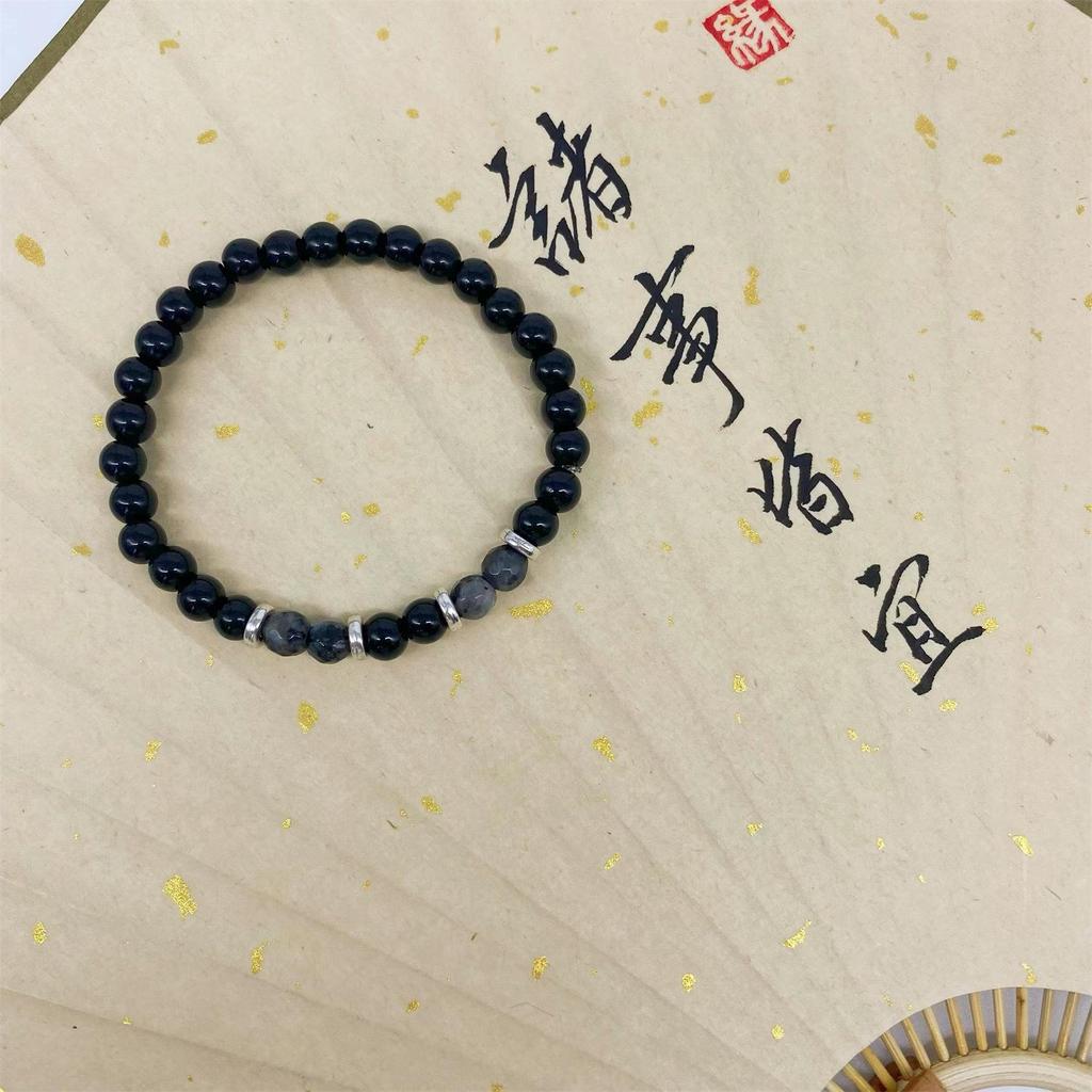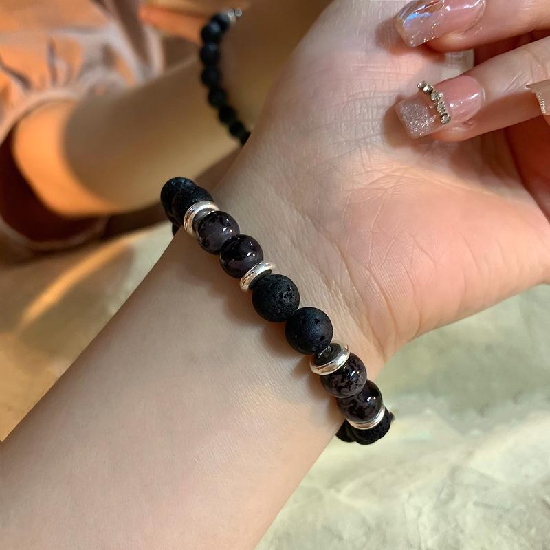Парный браслет из обсидиана в современном китайском стиле: Роскошные, высококачественные эластичные украшения для женщин.