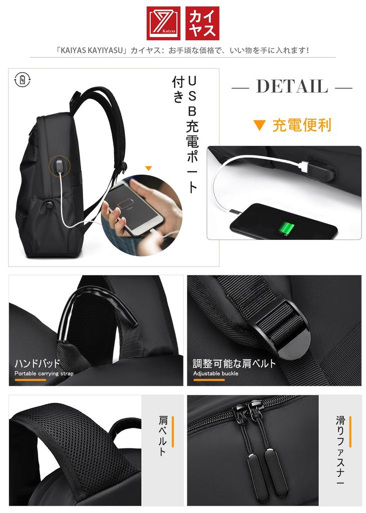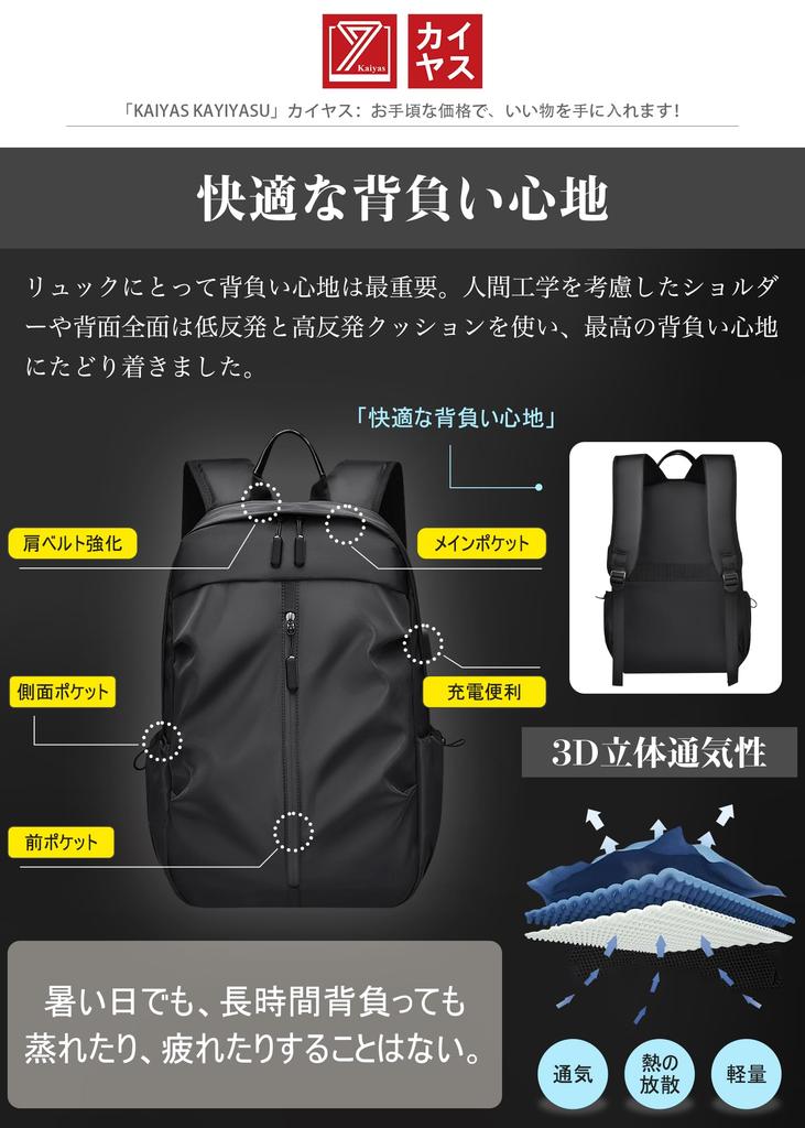 Rick PC USB Water Large Commuting to Business Student [Kayiyasu] Рюкзак, Мужской мешок, Мужской рюкзак, Рюкзак, 15,6 дюйма, Порт, Легкий,