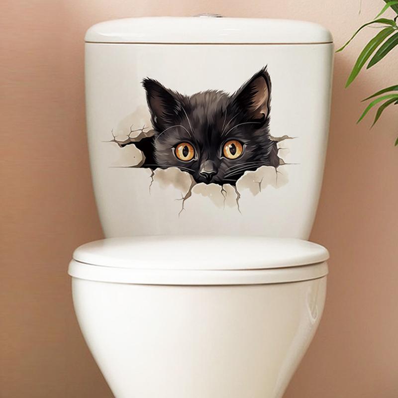 Смешные 3D наклейки на сиденье унитаза с котенком, водонепроницаемые наклейки для туалета с животными, декор для ванной комнаты и туалета