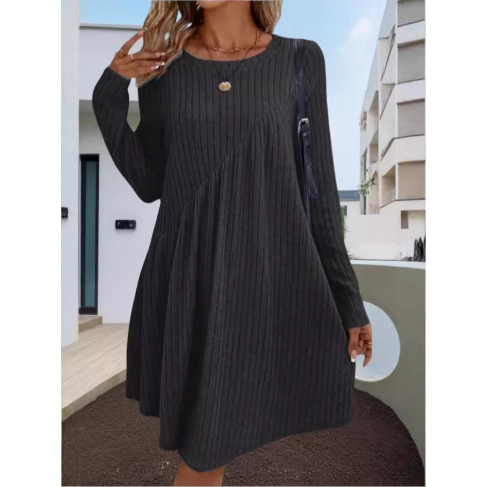 Осенне-зимние женские однотонные платья с неровной фактурной отделкой в полоску — купить товар онлайн с бесплатной доставкой до всему миру!