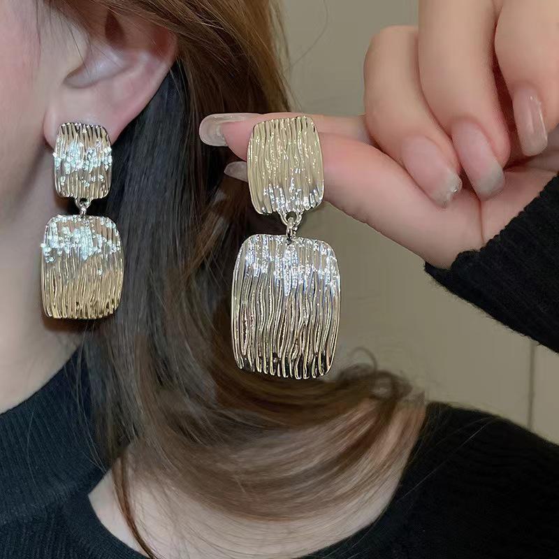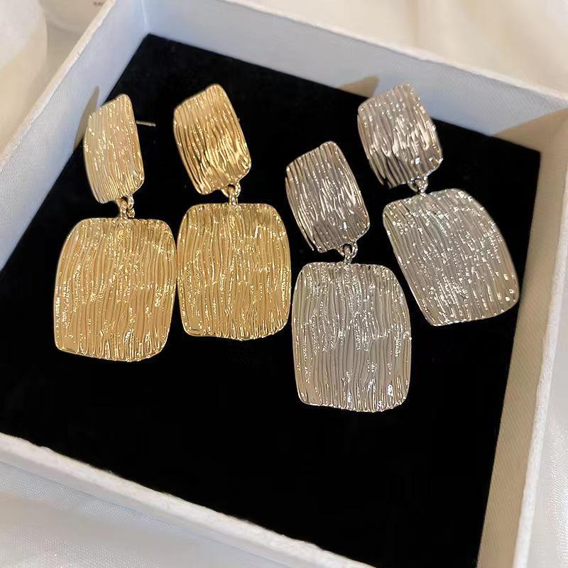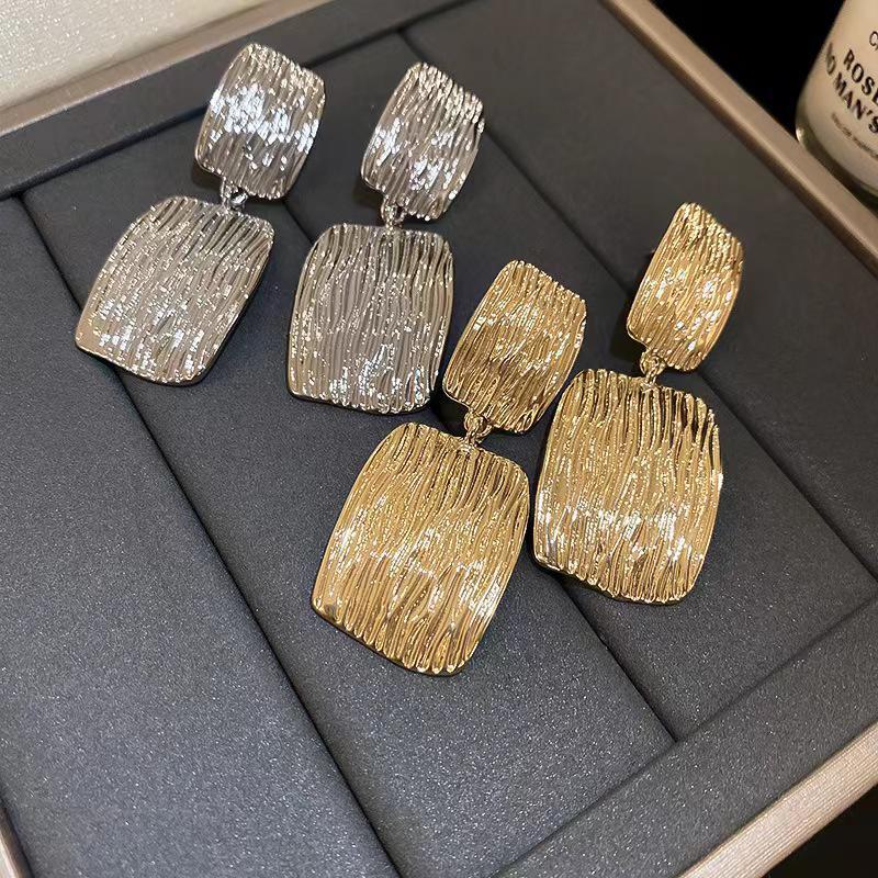 Модные квадратные полосатые серьги из металла: Модный, универсальный, высококачественный европейский и американский стиль для женщин