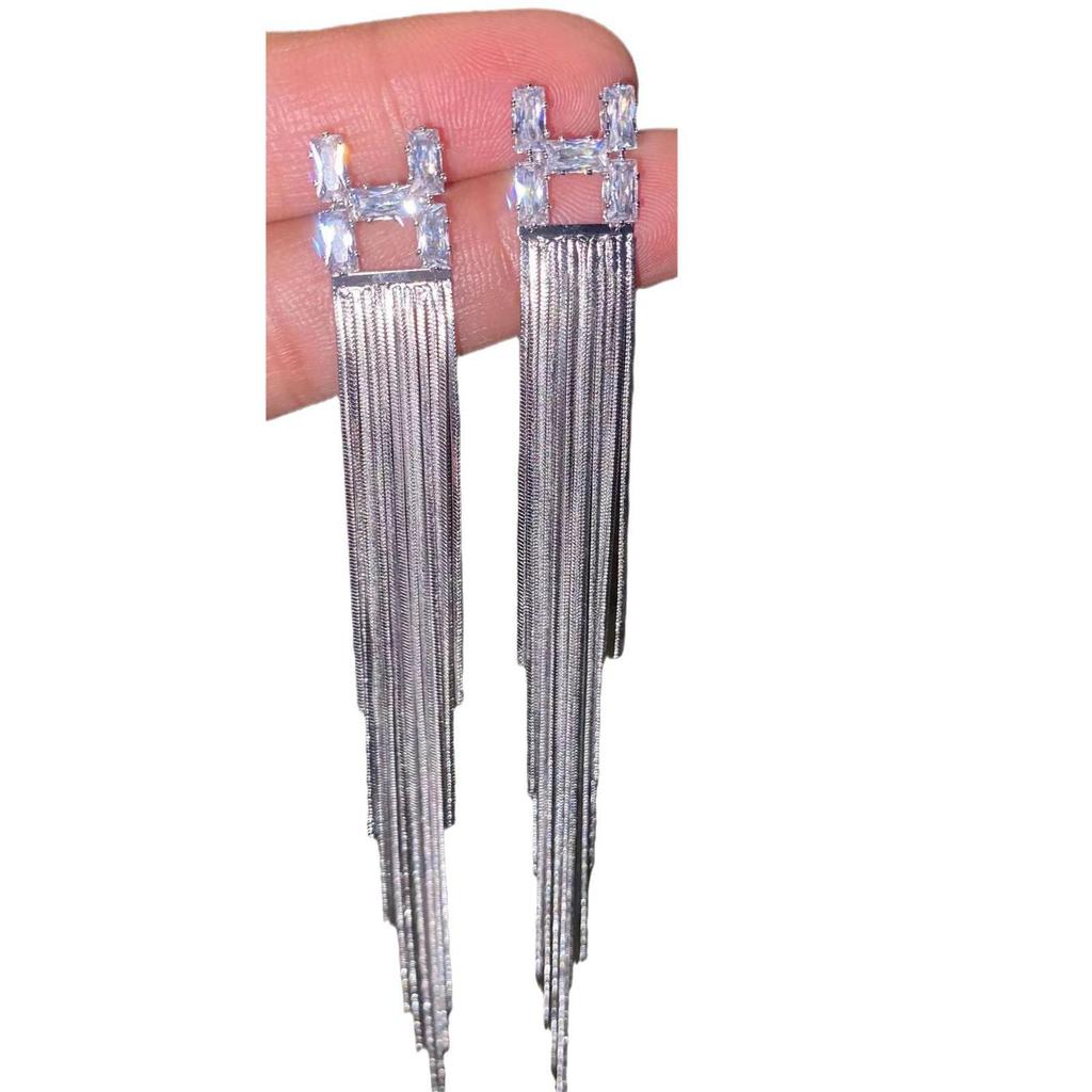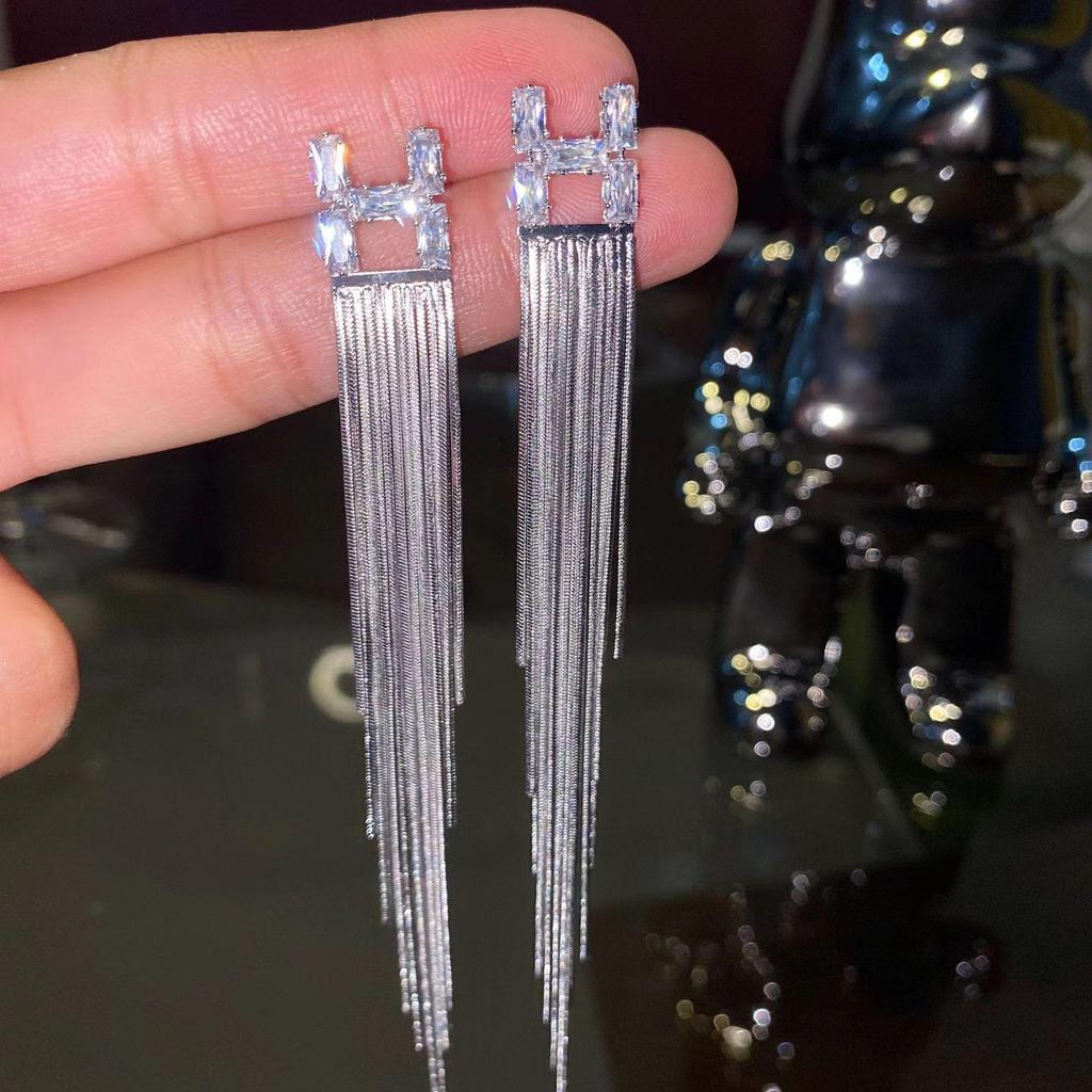 Корейские роскошные серьги-кисточки H из циркона для женщин - элитный нишевый дизайн