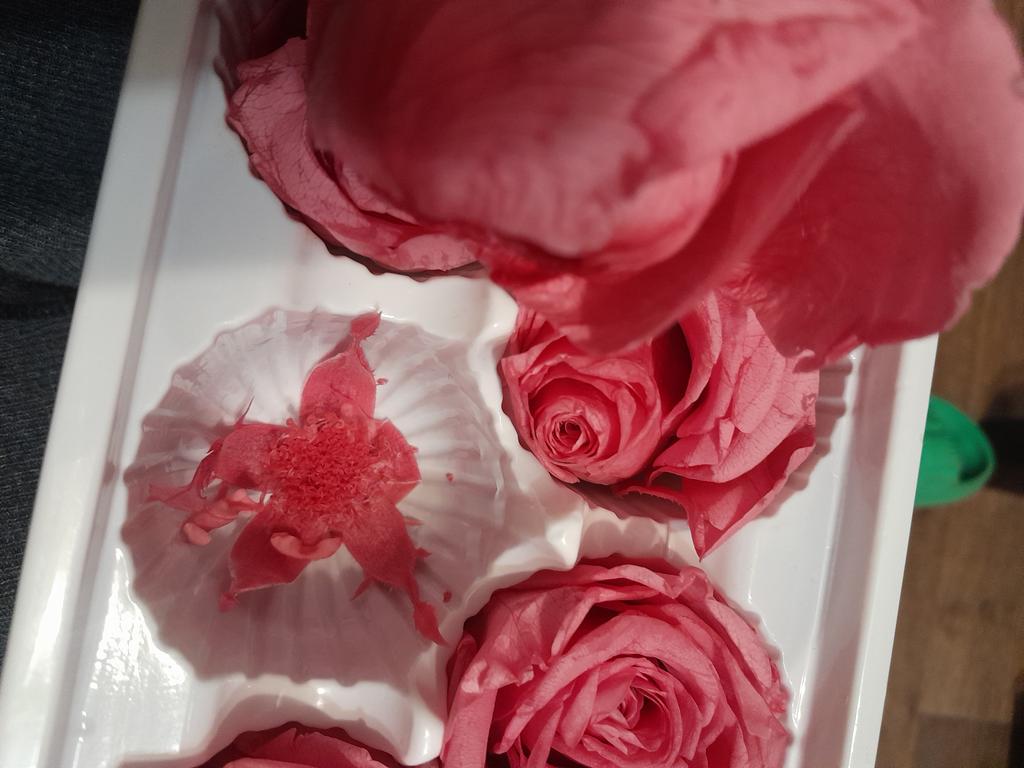 Качество розы конечно оставляет желать лучшего, мягко говоря ужасное. Розы все развалились, в пятнах, кончики на самых видны местах как будто их мяли, это видно. Сейчас такие никуда не использовать, только выкинуть. Зачем такое продавать. Позор продавцу.