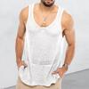Мужской летний однотонный свободный вязаный свитер без рукавов, молодежный дышащий спортивный жилет