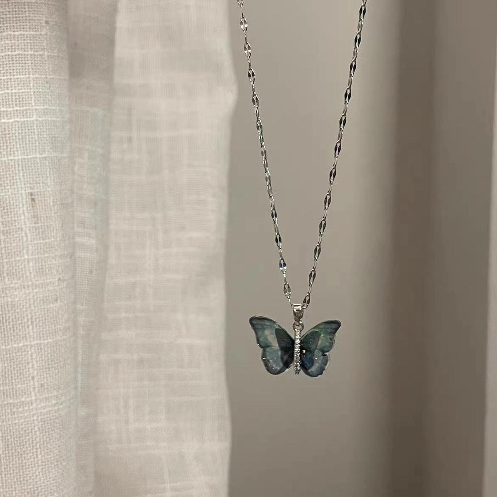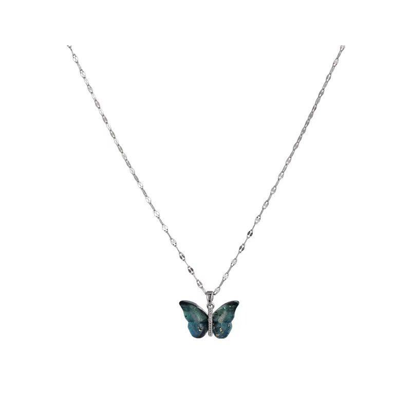 Ожерелье с цветной градиентной бабочкой: Высококачественный ретро-дизайн, универсальная цепочка на ключицу, модный аксессуар для женщин.