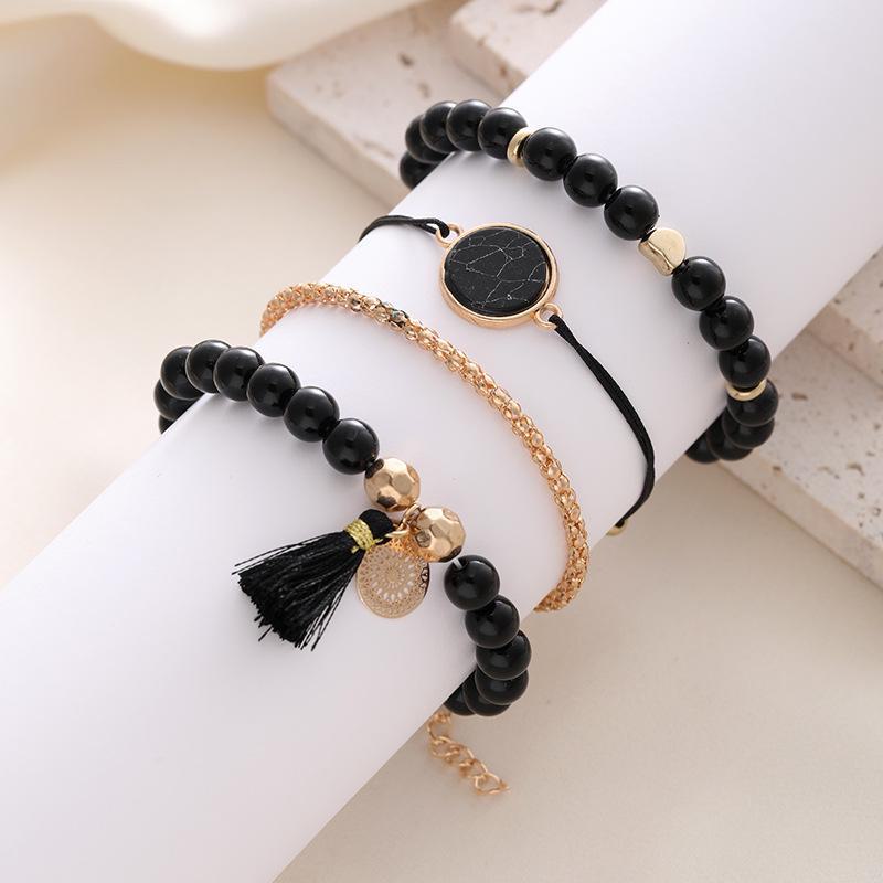 Новый комплект браслетов с бирюзовыми кисточками и дисками - Европейская и американская мода (4 шт)