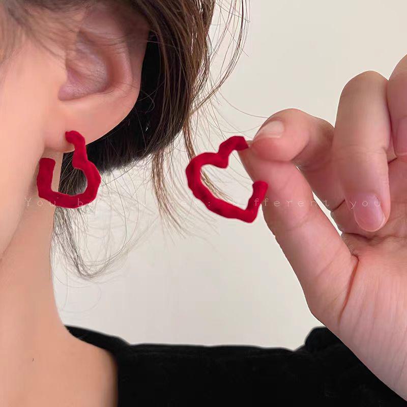 Новогодние серьги-сердечки из красного бархата — уникальный праздничный дизайн для женщин, идеально подходит для осени и зимы — купить товар онлайн с бесплатной доставкой по всему миру!