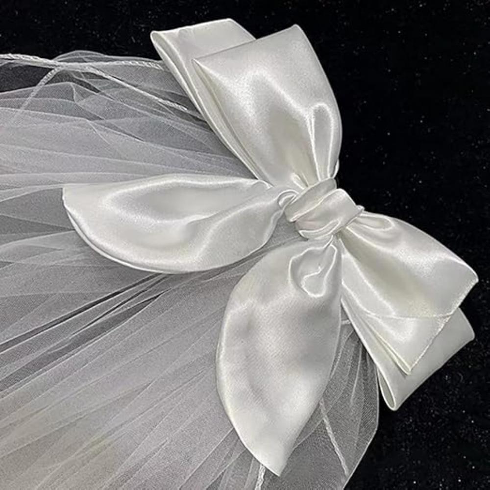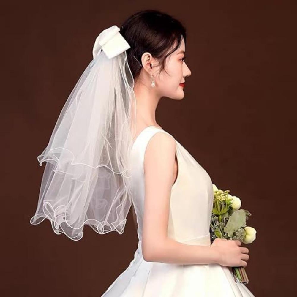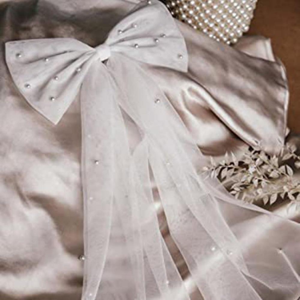 Свадебная белая заколка-бантик для волос с короткой фатой для свадеб и женских аксессуаров