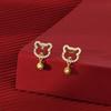 Серьги из серебра S925 пробы с изображением тигра в китайском зодиаке, колокольчиками и бриллиантами для женщин