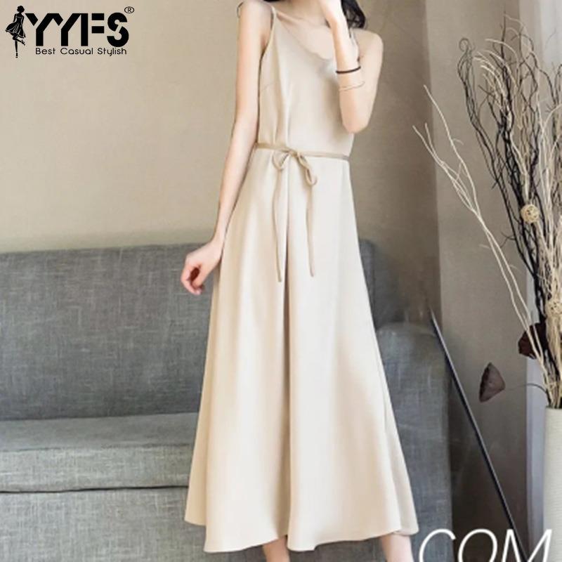 YYFS Женская мода лето весна однотонный принт без рукавов с v-образным вырезом и высокой талией повседневные платья