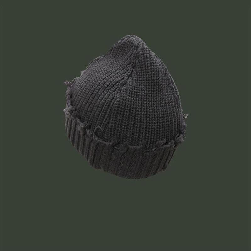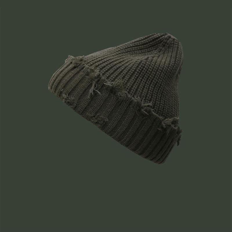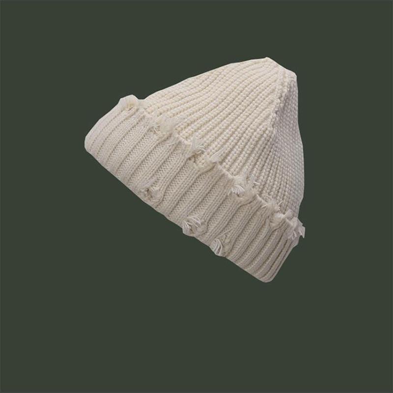 Вязаная шапка Skullies в стиле хип-хоп, осенне-зимняя утолщенная теплая мужская вязаная шапка-бини, однотонная модная уличная одежда, женские рваные шапки Skullies в стиле Харадзюку
