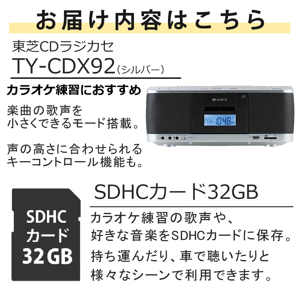 Магнитола Toshiba CD, кассетный плеер, серебристый, с комплектом SD-карты 32 ГБ TY-CDX92(S) 2-х частей