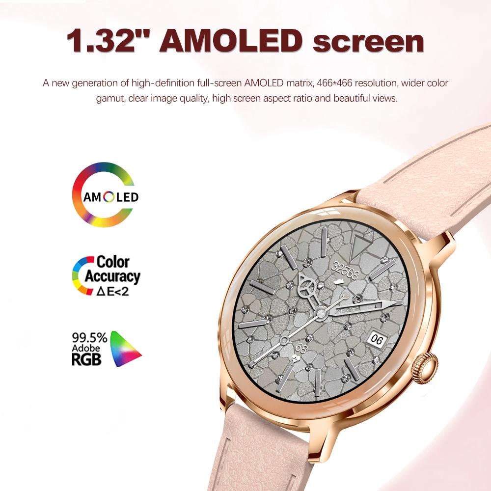 Размер экрана: 1,32-дюймовый 466*466 Amoled полностью сенсорный экран