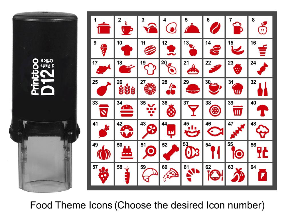 Персонализированные иконки на тему еды Printtoo, резиновый штамп, самонакладной штамп 12 мм
