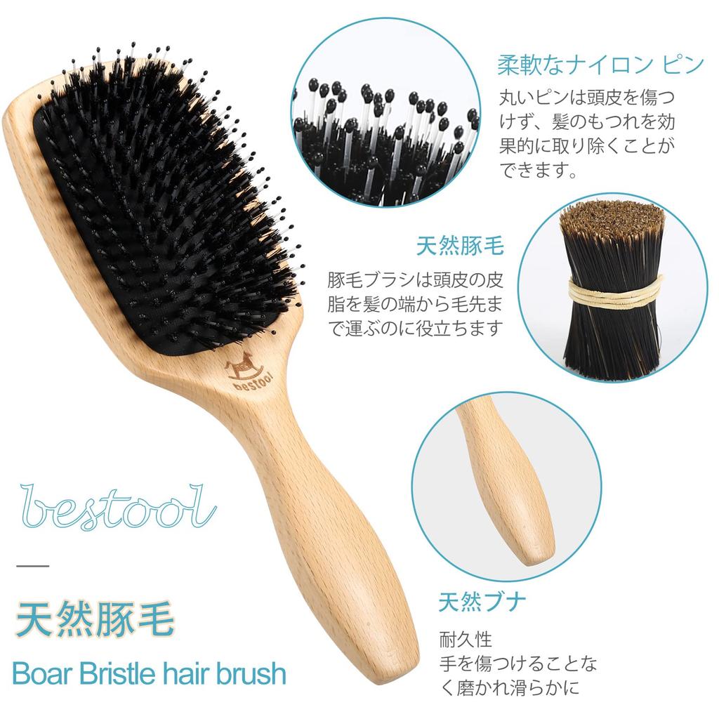 BESTOOL Щетка для волос из свиной щетины, расческа-лопатка, расческа для мужчин, женщин, детей, расческа для ухода за волосами, массаж кожи головы, гладкие, популярные, блестящие волосы, улучшение качества волос