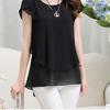 YYFS Женские модные повседневные летние весенние однотонные блузки и рубашки с короткими рукавами и круглым вырезом с принтом