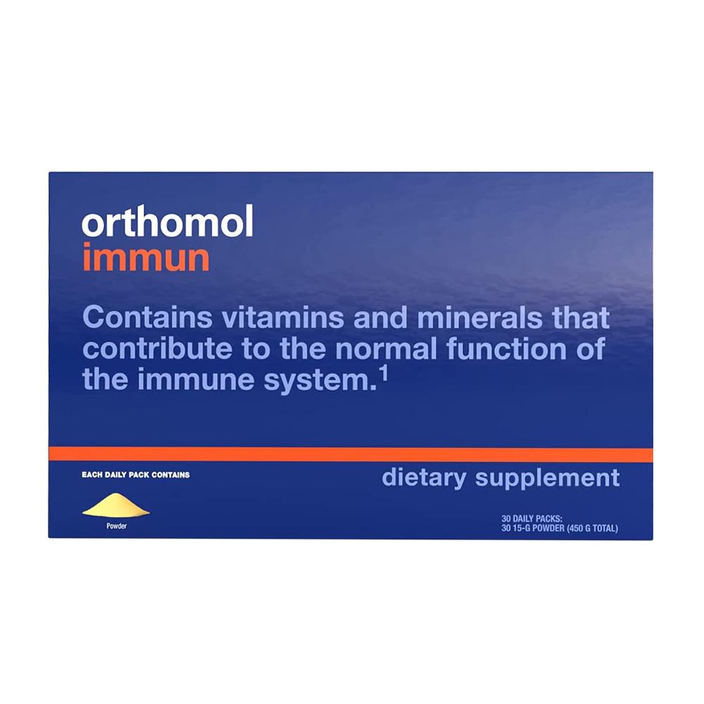 Ортомол Иммун — это пищевой продукт специального медицинского назначения.. Подходит для диетического лечения иммунодефицита, связанного с питанием. (например. рецидивирующие респираторные инфекции). Ортомол Иммун содержит важные микроэлементы для иммунной системы.. Питательные свойства витамина С играют ключевую роль в иммунной защите.. Например, некоторые иммунокомпетентные клетки содержат концентрацию витамина С, которая примерно в 10–100 раз превышает уровень в плазме.
