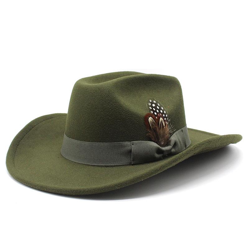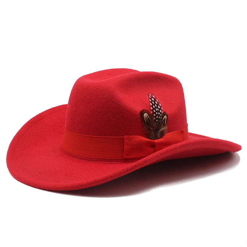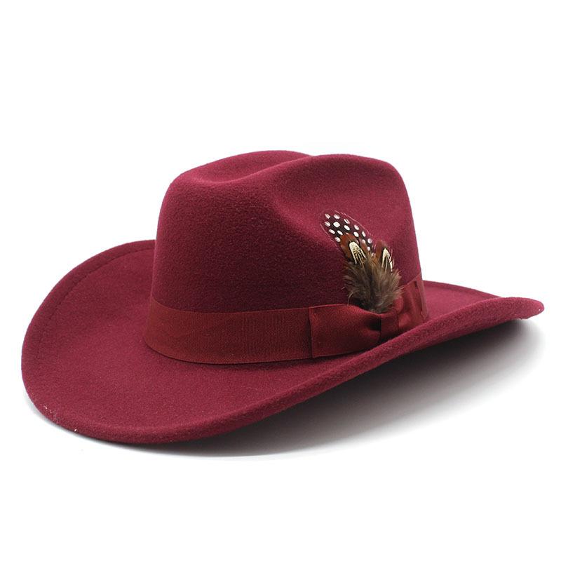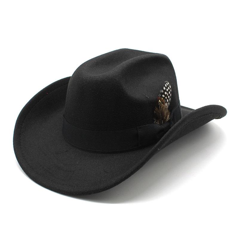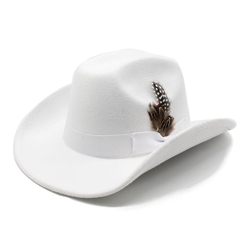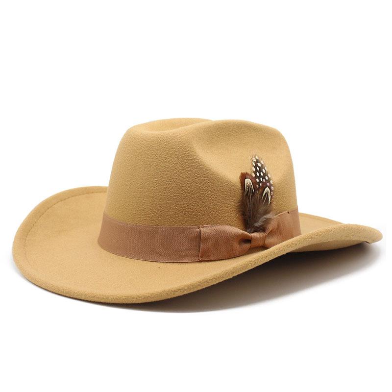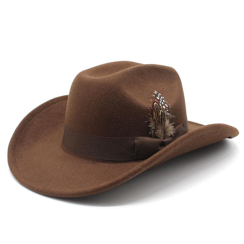 Молодежный цилиндр для мужчин и женщин с большими полями шерстяная шляпа с перьями