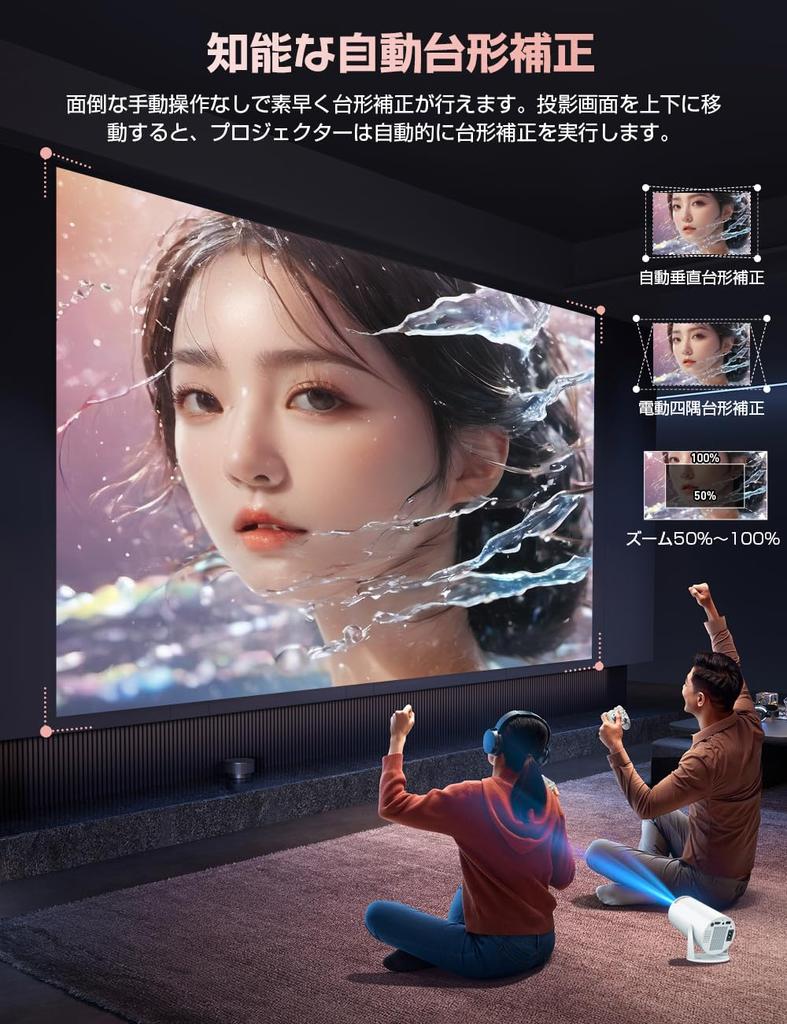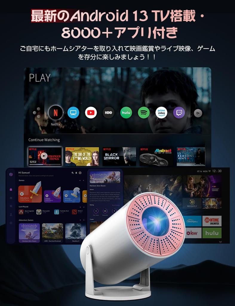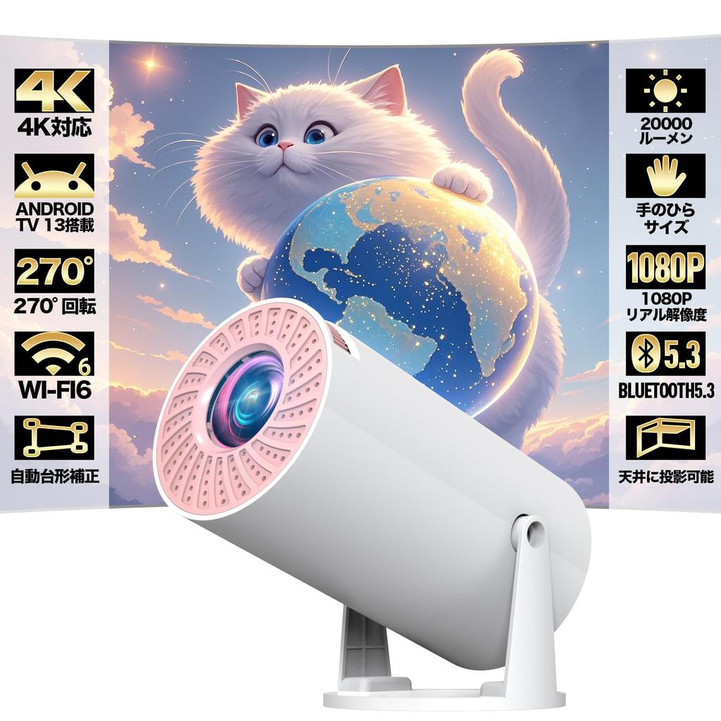[Последняя версия 2025 г. / Установлен Android TV 13.0] Проектор Happilaff, небольшой 20000 лм, вращение на 210°, совместимый с 1080P 4K проектор, потолочная проекция, автоматическая коррекция трапецеидальных искажений, встроенный динамик Bluetooth 5.3 HiFi, домашний проектор, домашнее использование, функция масштабирования 50%, совместим со смартфонами/ноутбуками/DVD/Switch и т. д.. Инструкция на японском языке