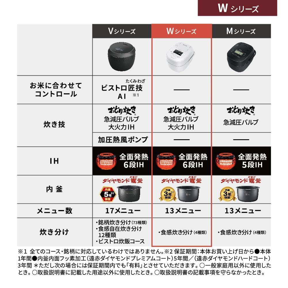Panasonic Rice Cooker One Sho Rapid Pressure Reduction Valve Large Heat Power IH Odori Cooker Full Heat Generation 6 Stage IH Type White & SR-W18A-W
