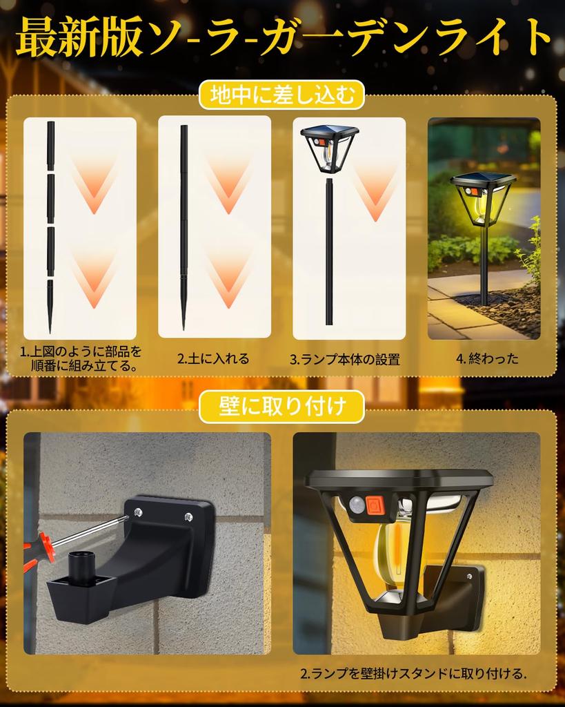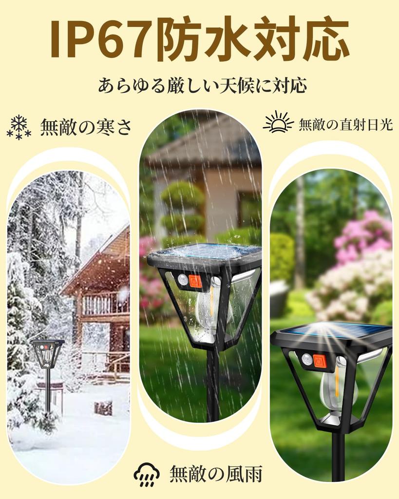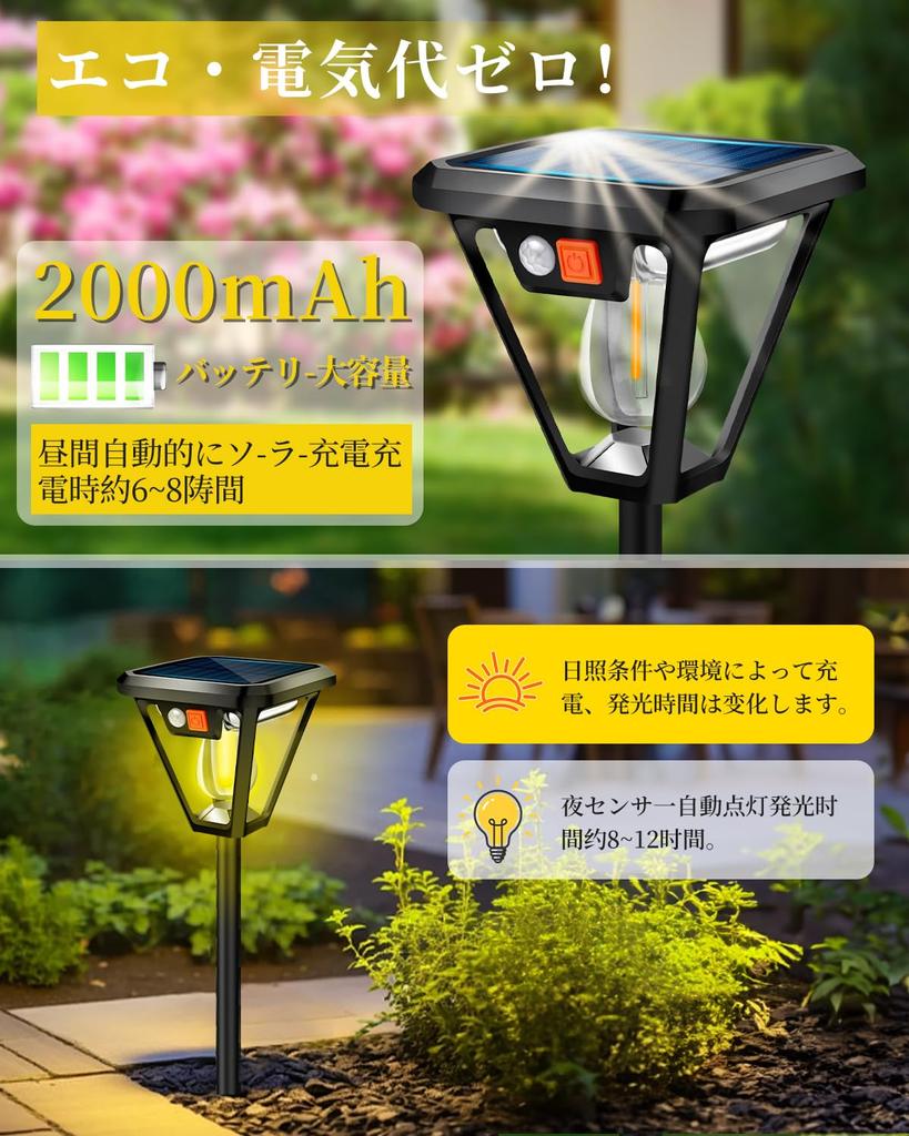[Солнечный садовый светильник/Идеально подходит для энергосберегающих мероприятий] Использует высокоэффективную монокристаллическую солнечную панель для преобразования дневного солнечного света в ночной свет.. Он заряжается в течение дня и светится ночью, поэтому нет счетов за электроэнергию и выбросов углекислого газа.. Мы добились экологически чистой энергии! Водонепроницаемая конструкция со степенью защиты IP67 защищает устройство даже в суровых погодных условиях, таких как дождь, снег и туман.. Отлично подходит для различных открытых пространств, таких как входы, сады, коридоры и парковки!